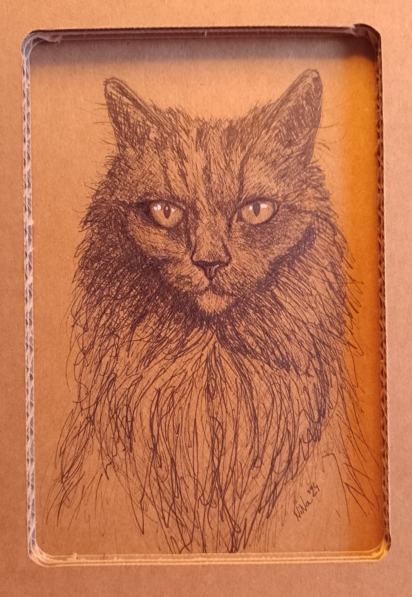 Pentekening op kraftpapier, 13x18 cm voor 47,50 /ook op bestelling / mail je foto naar info@ninavdhulst.nl