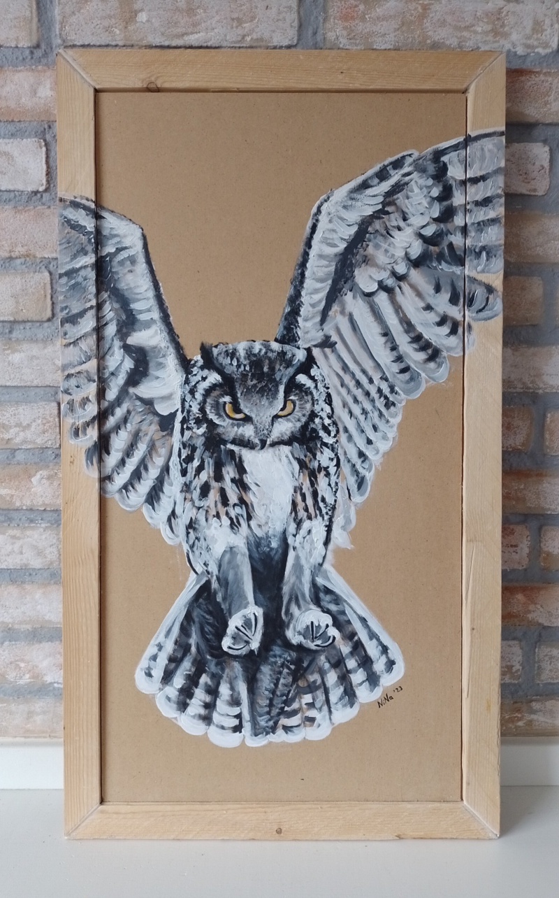 "Oehoe", acryl op mdf/houten lijst, 40x70cm